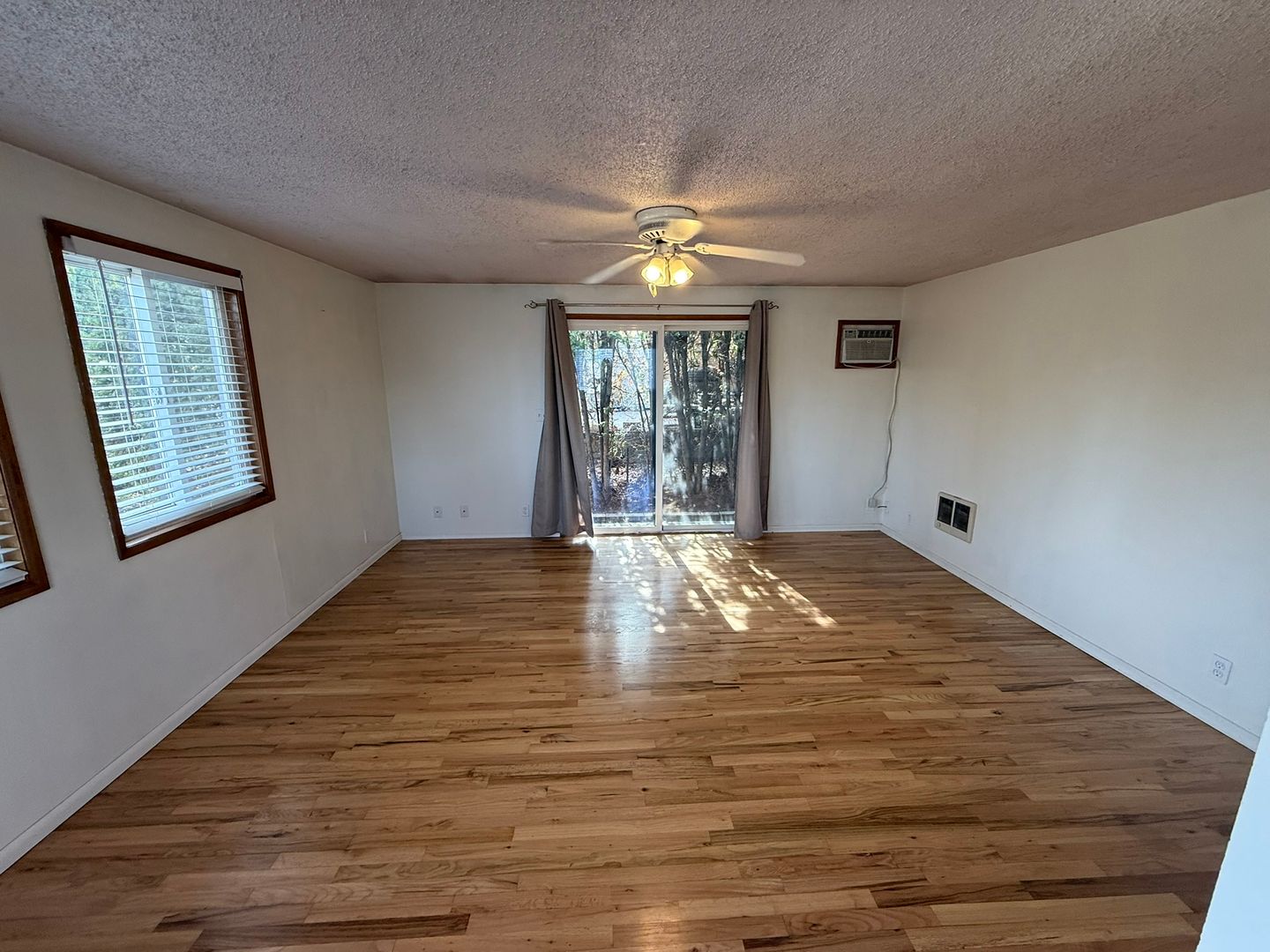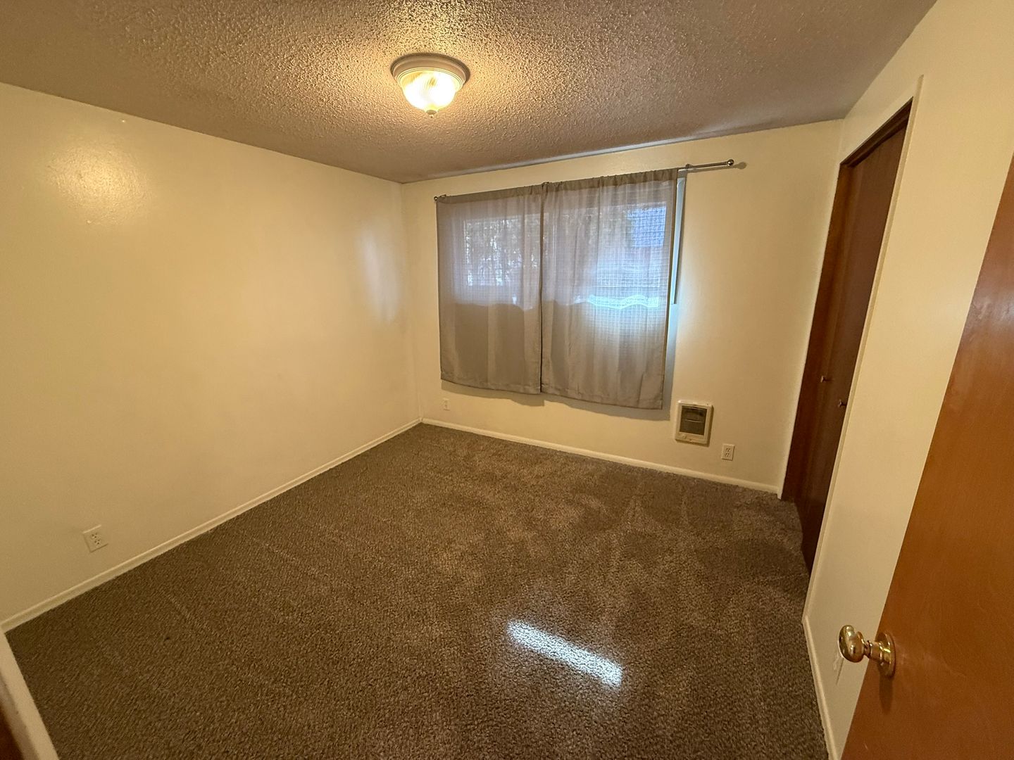 Clean and well-maintained 2 bedroom, 1 bathroom unit conveniently located in The Dalles. The living room features hardwood flooring and a sliding glass door for exterior access. Hardwood floors continue into the kitchen, which offers a functional layout and practical cabinet space for everyday living. Additional storage is available in the downstairs laundry room, which has exterior access — great for keeping extra items organized. One off-street parking space is included, with access via a shared driveway. No smoking or vaping. No pets.